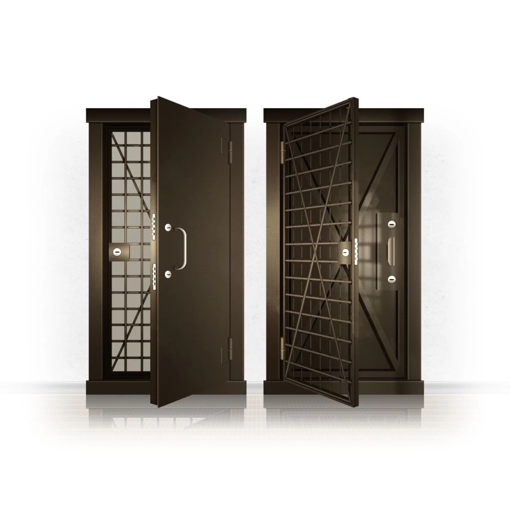 Металлические двери КХО и КХН представляют собой входные блоки, обладающие высоким уровнем взломостойкости и состоят из трех основных элементов: усиленного каркаса, сплошного металлического полотна и решетчатой двери. Дверной блок изготавливается из стального уголка 100*100 мм. Места крепления блока к стене цементируются и закрываются стальными наличниками шириной 40 мм. Крепеж заходит вглубь стены на 80 мм. В конструкции внешней створки монтируются ребра жесткости, для обшивки используется сталь толщиной не менее 3 мм. Внутренняя решетка изготавливается из прутка диаметром 16 мм. Размер ячеек решетки должен составлять не более 15 на 15 см. В точках пересечения прутья надежно приваривают друг к другу. В КХО и КХН необходимо поддерживать определенную температуру и влажность. Для этого внутреннее пространство глухой двери заполняется теплоизоляционным материалом, а по периметру двери приклеивается уплотнитель. Такие двери оборудуются замками с повышенным уровнем взломостойкости. Специализированные двери КХО и КХН в Ростове могут быть оснащены сигнализацией, в конструкции могут быть проушины для навесного замка и элементами для опечатывания. Если идет речь о двери в комнату хранения оружия, в створке оборудуется окно для выдачи оружия и спец. средств, которое накрывается стальной дверцей.