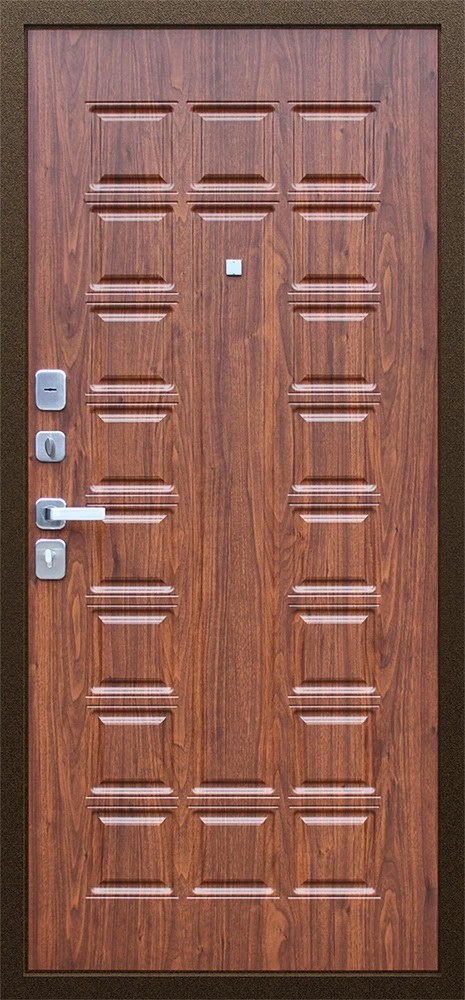 Надежная входная Дверь Спартак Орех темный премиум класса по цене 33 623 руб. Большая толщина стали защитит от проникновения в ваш дом, квартиру или коттедж. Используется очень качественная фурнитура: замки, цилиндры, ручки, защелки. Покрытие и отделка двери изготовлено под внимательным контролем производителя. Дверь имеет долгий срок службы и гарантию.