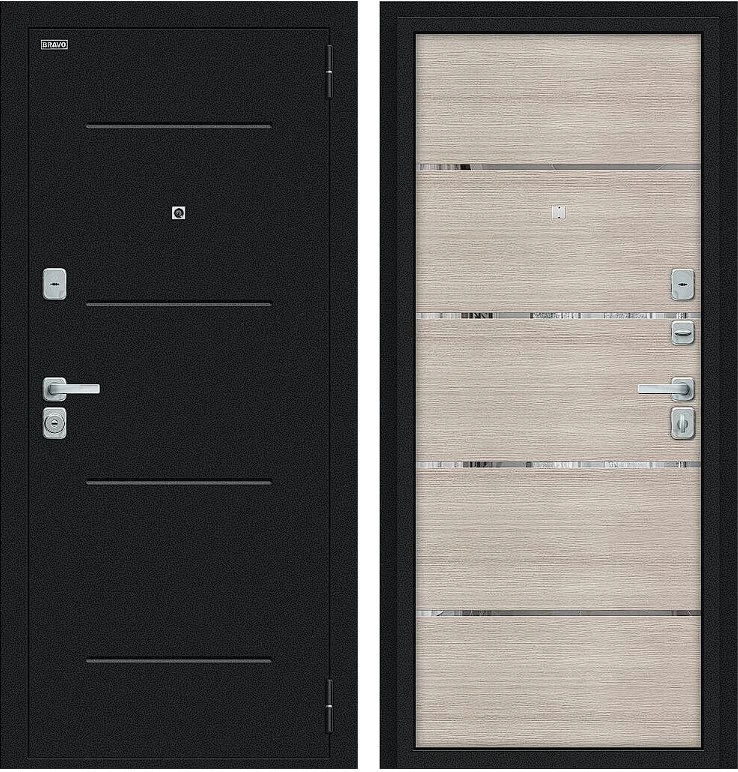 Надежная входная Дверь Браво Лайн/BChrome Букле черное/Cappuccino Melinga премиум класса по цене 32 923 руб. Большая толщина стали защитит от проникновения в ваш дом, квартиру или коттедж. Используется очень качественная фурнитура: замки, цилиндры, ручки, защелки. Покрытие и отделка двери изготовлено под внимательным контролем производителя. Дверь имеет долгий срок службы и гарантию.