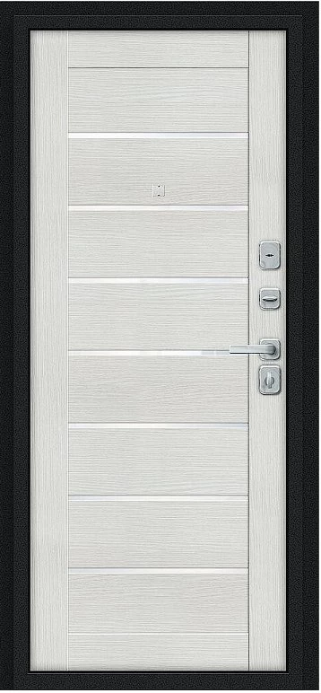 Дверь Браво Техно/BChrome Букле черное/Bianco Melinga - недорогая эконом класса по цене 3 923 руб., отлично подходит для временной установки в квартиру под сдачу, строительство, ремонт. Не смотря стоимость, модель хорошего качества.