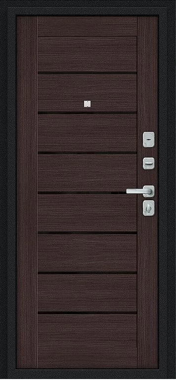 Дверь Браво Техно/BChrome Букле черное/Wenge Melinga - недорогая эконом класса по цене 3 923 руб., отлично подходит для временной установки в квартиру под сдачу, строительство, ремонт. Не смотря стоимость, модель хорошего качества.